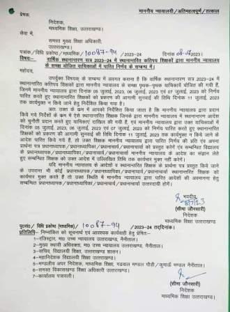 स्थानांतरित शिक्षकों को कार्यमुक्त किये जाने पर रोक, निदेशक माध्यमिक ने जारी किये निर्देश