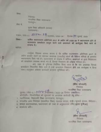 निर्देश में कहा गया है कि सहायक अध्यापक एलटी और प्रवक्ता संवर्ग की ओर से तबादलों के सम्बन्ध में प्रत्यावेदन दिया गया है। निदेशालय स्तर पर इसके निपटारे की प्रक्रिया चल रही है।